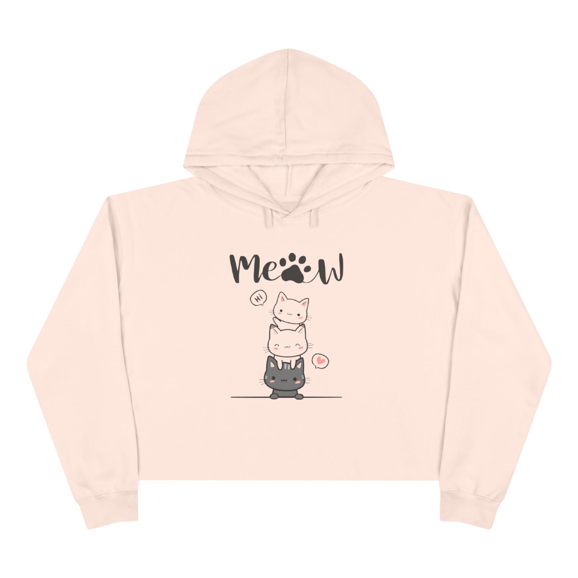 Cute Stacked Kittens Crop Hoodie - "Meow" Graphic Cat Lover Pullover